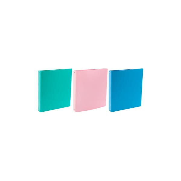 Carpeta escolar de polipropileno con mecanismo de 3 ganchos de 40 mm en colores.